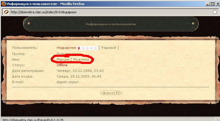 | А вот еще кое-что: http://www.lotro-russia.com/forums/showpost.php?p=44344&postcount=11 В продолжение: http://dolamrot.efreedom.ru/index.php?tid=85 И еще: http://www.lotro-russia.com/gallery/photo/7371/1973/page/1/ Итак, пока получается: 1) Аккаунт Indarion, владелец Максим (осенью 2010), видимо он же на фото. В 2008 живет в Полтаве (имя неизвестно). Он же Богдан из Москвы (весной 2010). На акке есть воитель, который состоял в Доме Ветра и подавал заявку в Дол Амрот. 2) Аккаунт Kymmyk123, владелец Олег, из Киева. На акке есть ХР, который подает заявку в ВД. Первый акк якобы был поменян на второй (с пп). С первым аккаунтом тоже не все чисто. Разбираться в этом дальше желания нет. К сожалению, вынужден отказать в приеме. Не люблю мутные истории, обмены аккаунтами и все такое.